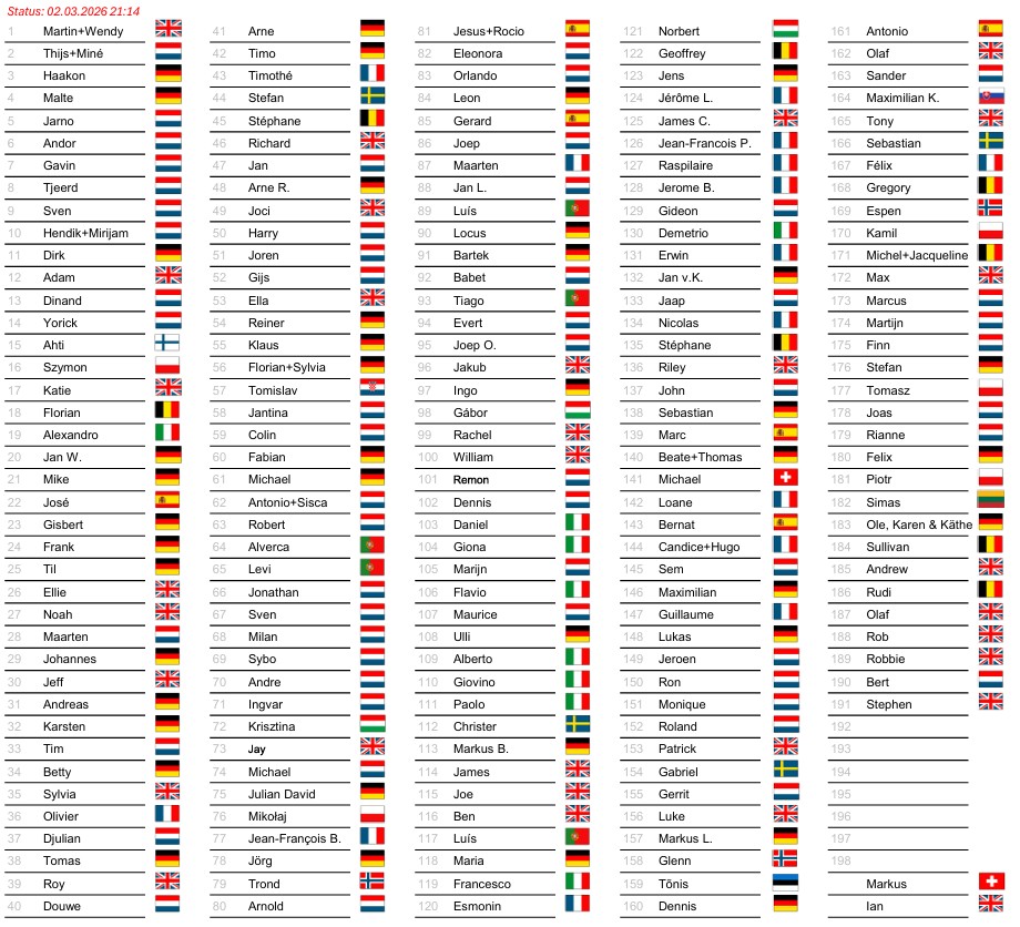 In order for us to be able to inform the restaurants of the precise number of people for the dinner buffets, and for us to also know the precise number of people joining us for the whole weekend, please fill out the online form. Please complete and submit the form by April 5th, 2026 at the latest.
